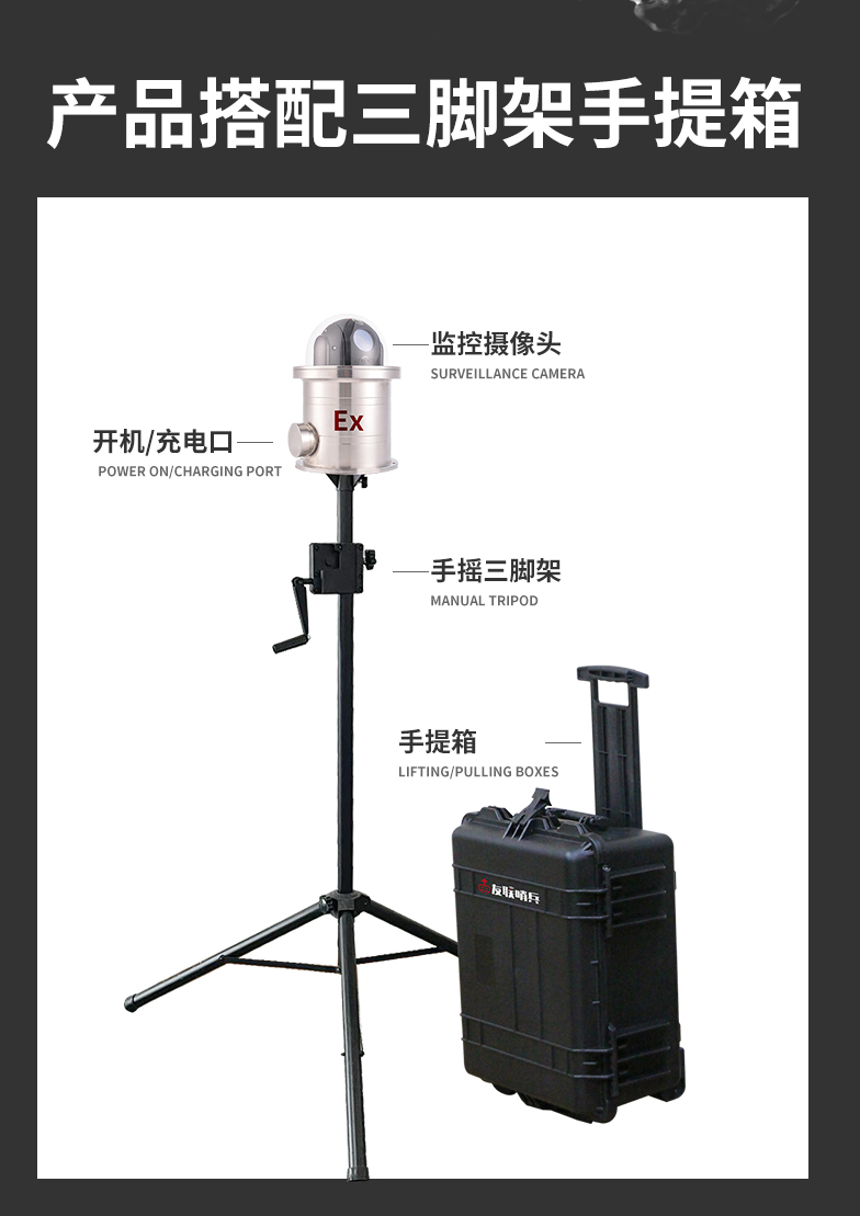 友聯哨兵 ULH-Ss12Ex 防爆布控球是一款具備防爆功能的一體化無線視頻應急指揮系統,專為特定行業(如石油、煉化、化工、燃氣等危險化學和易燃易爆行業)設計。產品內置高清攝像機及高性能鋰電池組,通過無線網絡方式回傳至控制終端,具備防水防震防爆等特性,攜帶便捷,可快速安裝和收納,完全滿足石油、化工等作業區的移動巡檢、無人值守、臨時監控、應急指揮的應用需求。